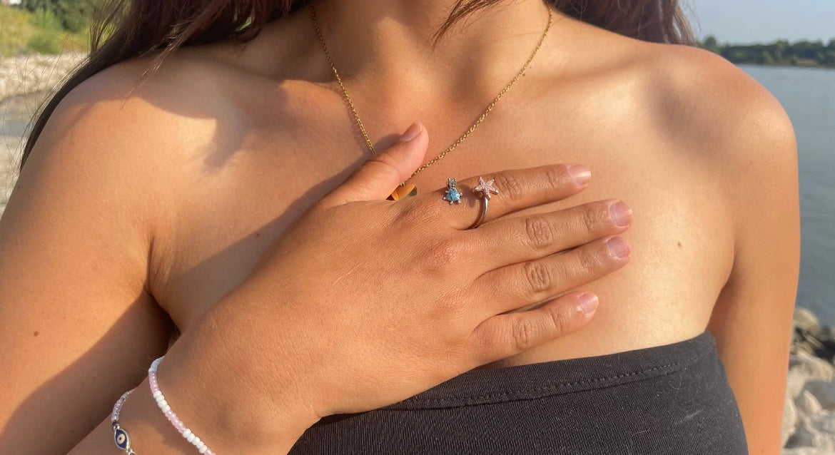 Unsere Vision ist eine Welt, in der Schmuck nicht nur ein Accessoire ist, sondern ein Symbol für Selbstfürsorge, Balance und innere Stärke.